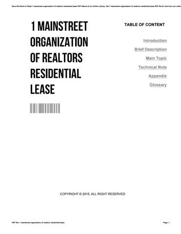 Read Online 1 MAINSTREET ORGANIZATION OF REALTORS RESIDENTIAL... Epub